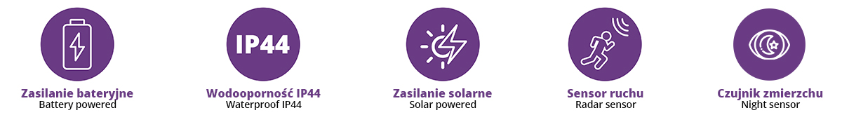 Czujnik ruchu PIR: Wbudowany czujnik ruchu umożliwia automatyczne dostosowanie mocy oświetlenia w zależności od wykrycia ruchu wokół lampy.