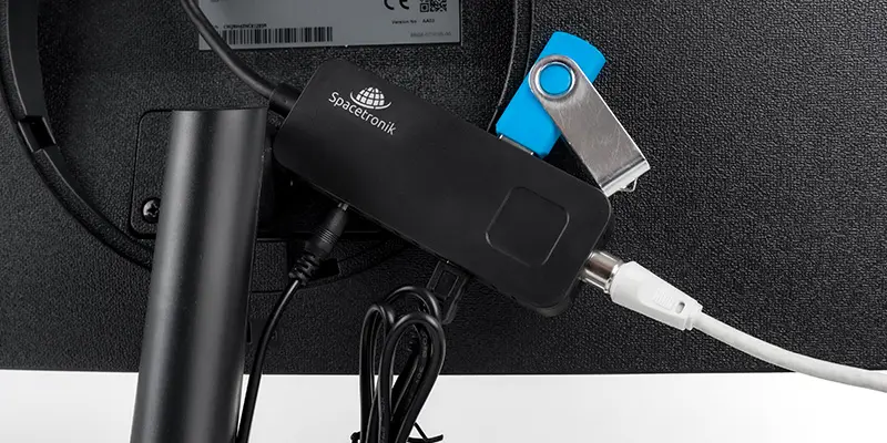 Spacetronik U3 Mini oraz U8 Mini - oba nowe modele tunerów tv naziemnej są na tyle małe, że można je schować bezpośrednio za telewizorem. Ale zaraz! Przecież pilot ich nie "złapie". Tuner telewizji naziemnej Spacetronik U3 Mini oraz dekoder DVB-T2 Spacetronik U8 Mini zostały wyposażone w dodatkowy przewodowy odbiornik podczerwieni IR z wyświetlaczem LED. Tuner pozostaje schowany, a na wierzchu widoczny jest jedynie właśnie ten odbiornik.