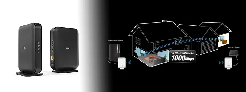 Kolejny nietypowy, bezprzewodowy przedłużacz do kabla ethernet Bridge Telekom. W zestawie mamy dwa urządzenia, które umożliwiają bezprzewodową wymianę danych pomiędzy nimi na spore odległości. Jedno z urządzem podłączamy koło routera, a drugie kilka pomieszczeń dalej. Powstaje tzw. link, który pozwala na transmisję rzędu 1000 Mbps. Jest to odległość, z którą tradycyjny repeater WiFi poradziłby sobie nijako. Do drugiego podłączamy np. komputer i cieszymy się przedłużeniem Internetu tym razem bez konieczności kładzenia kabli. Warto wspomnieć, że Bridge Telekom nie wymaga żadnej konfiguracji - jest Plug & Play.