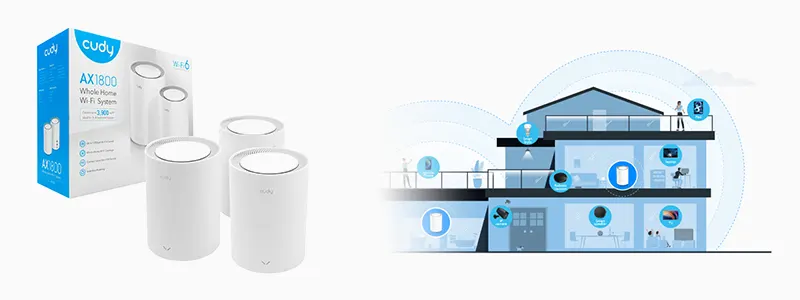 Jest to połączenie kilku routerów w jedną sieć, która wzmacnia sygnał we wszystkich pomieszczeniach. Dodatkowo sieć WiFi przy przejściu w zasięg innego routera nie przelogowuje urządzenia. Routery Mesh to nieprzerwany dostęp do Internetu to podstawa w wielu firmach i komfort użytkowania w domu. Do systemu możemy dołączyć kilka routerów, które rozstawiamy w budynku. Wystarczy w jednym — routerze głównym wprowadzić wszystkie ustawienia i skonfigurować pozostałe punkty za pomocą WiFi. Tworzą tzw. pajęczynę sieciową, która przesyła sobie sygnał. Kolejne rozwiązanie niewymagające prowadzenia kabli.