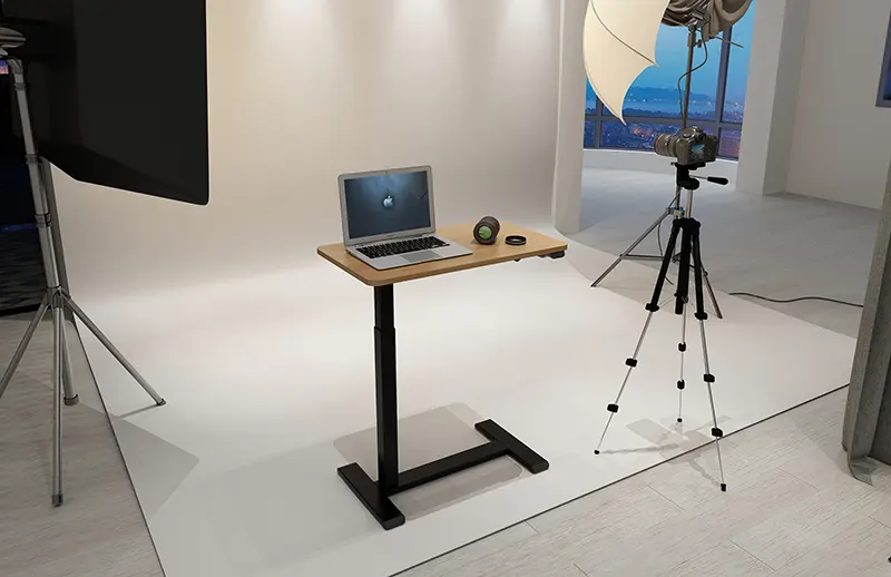 Na początek garść kwestii technicznych. Zarówno stolik do łóżka elektryczny, jak i ten bez silnika, a ze sprężyną gazową, ma regulowaną wysokość blatu - najniższa pozycja 65 cm, zaś najwyższa 103 cm. Taki zakres pozwala na korzystanie ze stolika nie tylko w łóżka, czy na fotelu - możemy przy nim pracować także stojąc lub będąc w pozycji tzw. pół-stojącej, czyli podpartej. W tym miejscu polecamy hokery regulowane, które poprzez swoją specjalną aktywną podstawę wymuszają pracę mięśni nóg oraz brzucha.