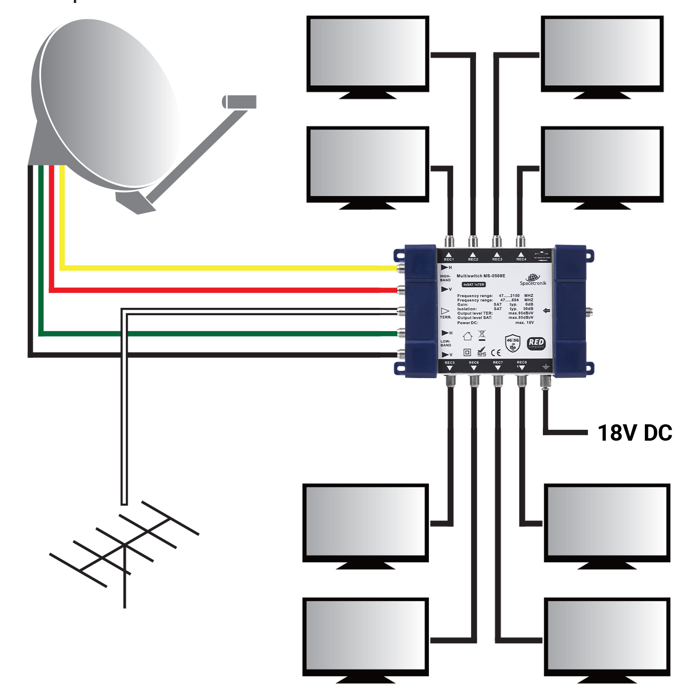 Multiswitch jest przeznaczony do rozbudowy wewnętrznej telewizyjnej instalacji antenowej. Umożliwia dystrybucję sygnału i podłączenie większej ilości gniazd abonenckich RTV-SAT. Automatycznie rozpoznają i dopasowują rodzaj sygnału przekazywanego do tunerów, stąd może być używany zarówno do podłączenia wielu odbiorników satelitarnych, jak i naziemnych. Ten rodzaj urządzenia jest przeznaczony do użytku wewnętrznego.