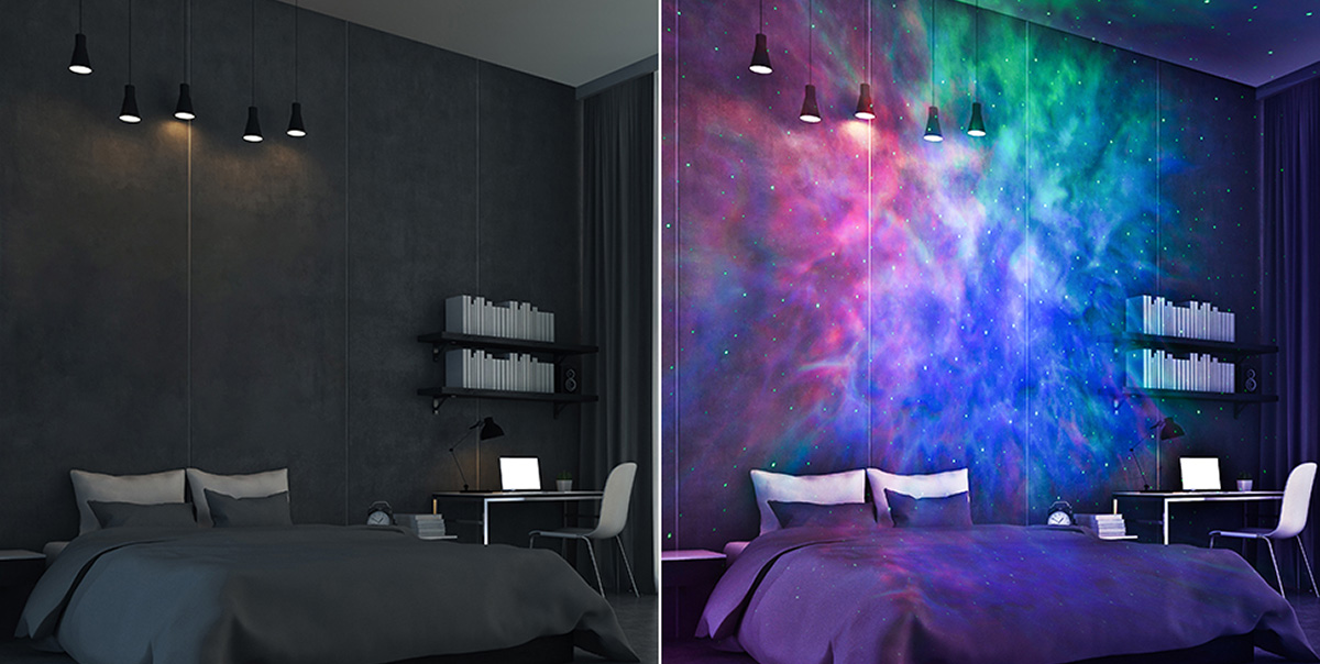 Druga z nowości może się kojarzyć z wyświetlaczem gwiazd dla dzieci, które mają pomóc w szybszym zasypianiu pociech lub nieco brzydko mówiąc z tandetnym gadżetem. Śmiało mogę przyznać, że należałem do wyborców drugiego skojarzenia, ale efekt przerósł najśmielsze oczekiwania. Projektor gwiazd Spacetronik po podłączeniu i uruchomieniu wygenerował na suficie coś w rodzaju zorzy wzbogaconej o całe mnóstwo zielonych gwiazd tworząc galaktyczny klimat w pomieszczeniu. Te piękne efekty stworzone przez to urządzenie świetnie sprawdzą się w wielu okazjach. Granie w gry komputerowe, kolacja w romantycznym wydaniu, seans filmowy, domówka... okazji znajdzie się jeszcze ze 100 co najmniej. Producent wyposażył projektor gwiazd na sufit w lasery o dużym zasięgu emitujące wielobarwne galaktyczne mgławice oraz zielone gwiazdy obracające się o 360°. Profesjonalny projektor gwiazd również sprawdzi się w roli dziecięcego usypiacza, zastępując tradycyjną lampkę nocną. Urządzeniem możemy zarządzać z poziomu banalnego panelu na froncie urządzenia lub z poziomu dobrzej znanej aplikacji mobilnej Tuya Smart na iOS oraz Android. Z jej poziomu dostosujesz tryb światła, prędkość, jasność, kolor, a także ustawisz harmonogram po to, by projektor aktywował się automatycznie o konkretnych porach. Projektor gwiazd do pokoju potrafi synchronizować się muzyką zebraną przez mikrofon. Do wyboru jest sześć różnych trybów.