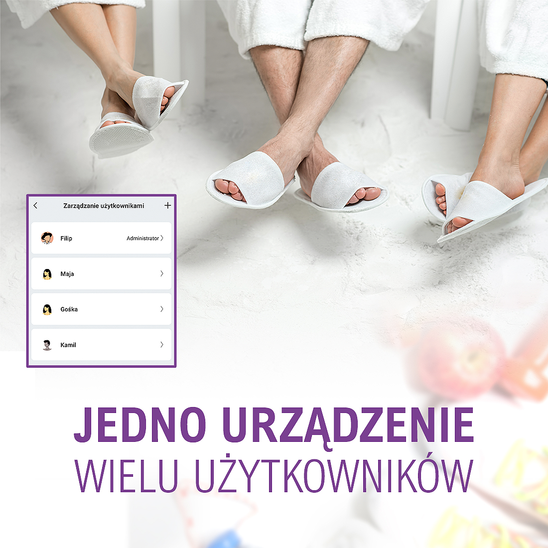 Inteligentna waga łazienkowa Spacetronik SL-BS01 jest przeznaczona dla wielu użytkowników, co pozwala na wspólne korzystanie z urządzenia przez rodzinę czy współlokatorów. Każdy użytkownik może mieć swoje własne konto i ustawienia, a dane są automatycznie synchronizowane z aplikacją Tuya. W ten sposób łatwo można monitorować postępy każdego z domowników, a jednocześnie chronić prywatność ich danych.