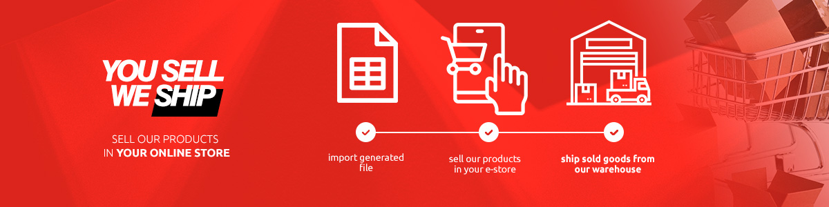 Integration with above wholesalers allows for easy and intuitive integration with such platforms as Click Shop, Shoper, Shopware, KQS.store, Sote, PrestaShop, Shopify, WooCommerce, Baselinker. Also - If you are a distributor and you have an interesting range of products in your offer, please contact us. We'll be happy to cooperate.