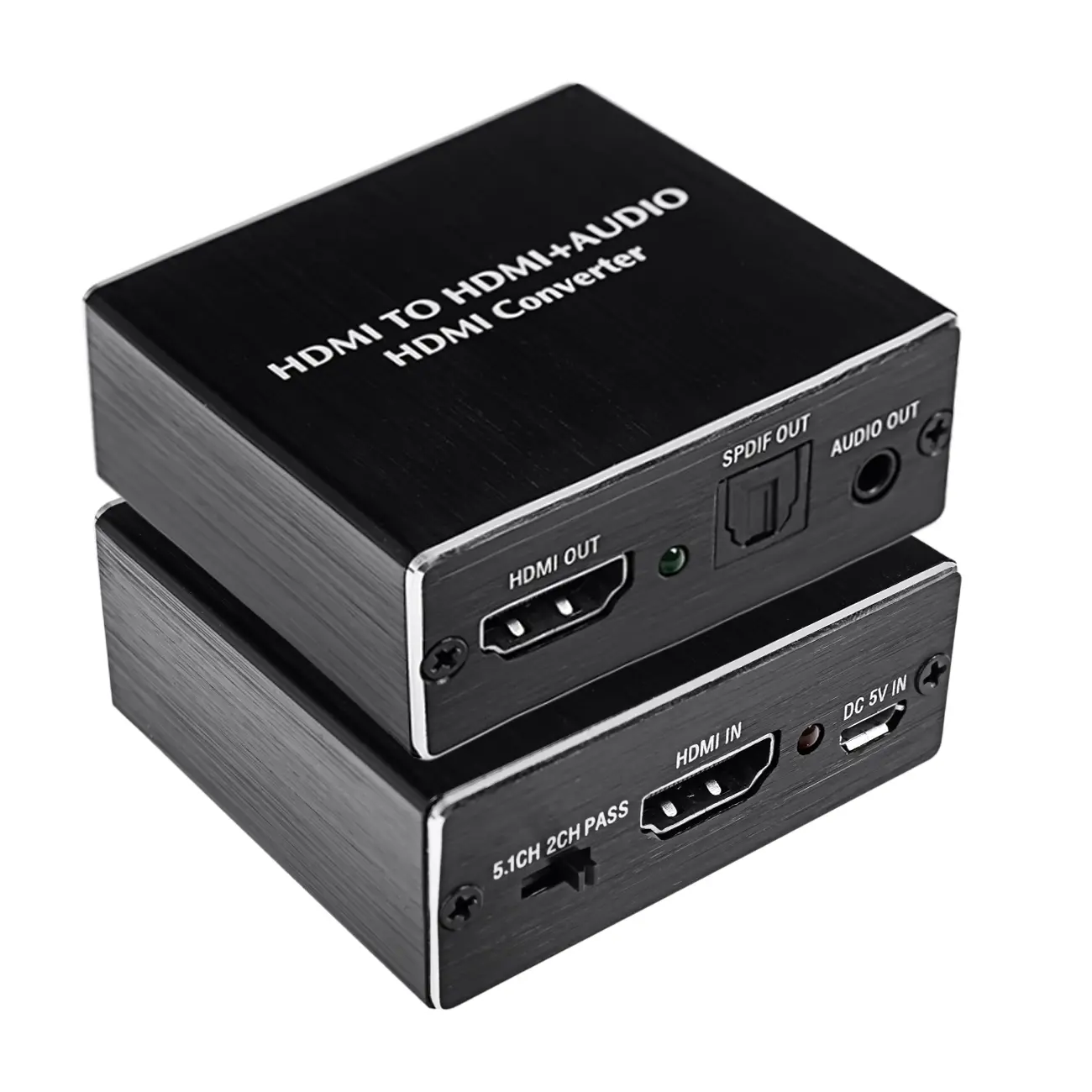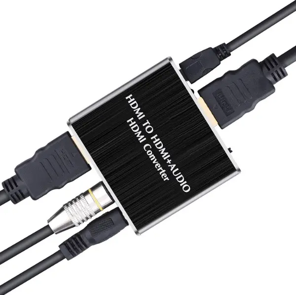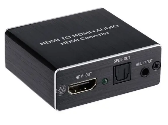 Extractor HDMI na HDMI + Audio (R/L+SPDIF) pozwala na podłączenie urządzenia wysyłającego sygnał audio i video (tuner, konsola, dvd, blu-ray) do telewizora kablem HDMI. Dodatkowo można wyodrębnić sygnał audio z urządzenia i przesłać go do amplitunera kina domowego lub innego tego typu urządzenia. Dzięki takiemu rozwiązaniu dźwięk będzie słyszalny standardowo z głośników telewizora i dodatkowo z drugiego źródła po włączeniu amplitunera. Ciekawe rozwiązanie gdy chcemy panować i sami decydować kiedy dźwięk ma być słyszalny z danego urządzenia.