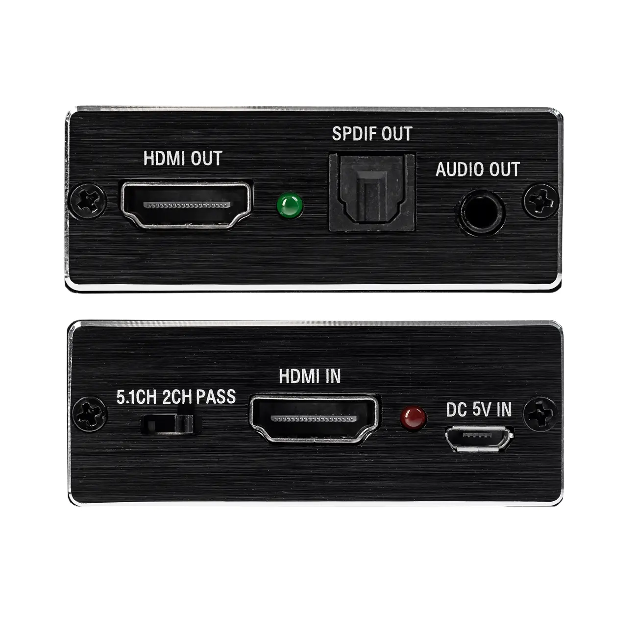- Jedno wejście HDMI do jednego wyjścia HDMI + cyfrowe wyjście SPDIF (optyczne) audio (tryb 2CH / 5.1CH) i 3,5 mm stereofoniczne wyjście audio (tryb 2CH)