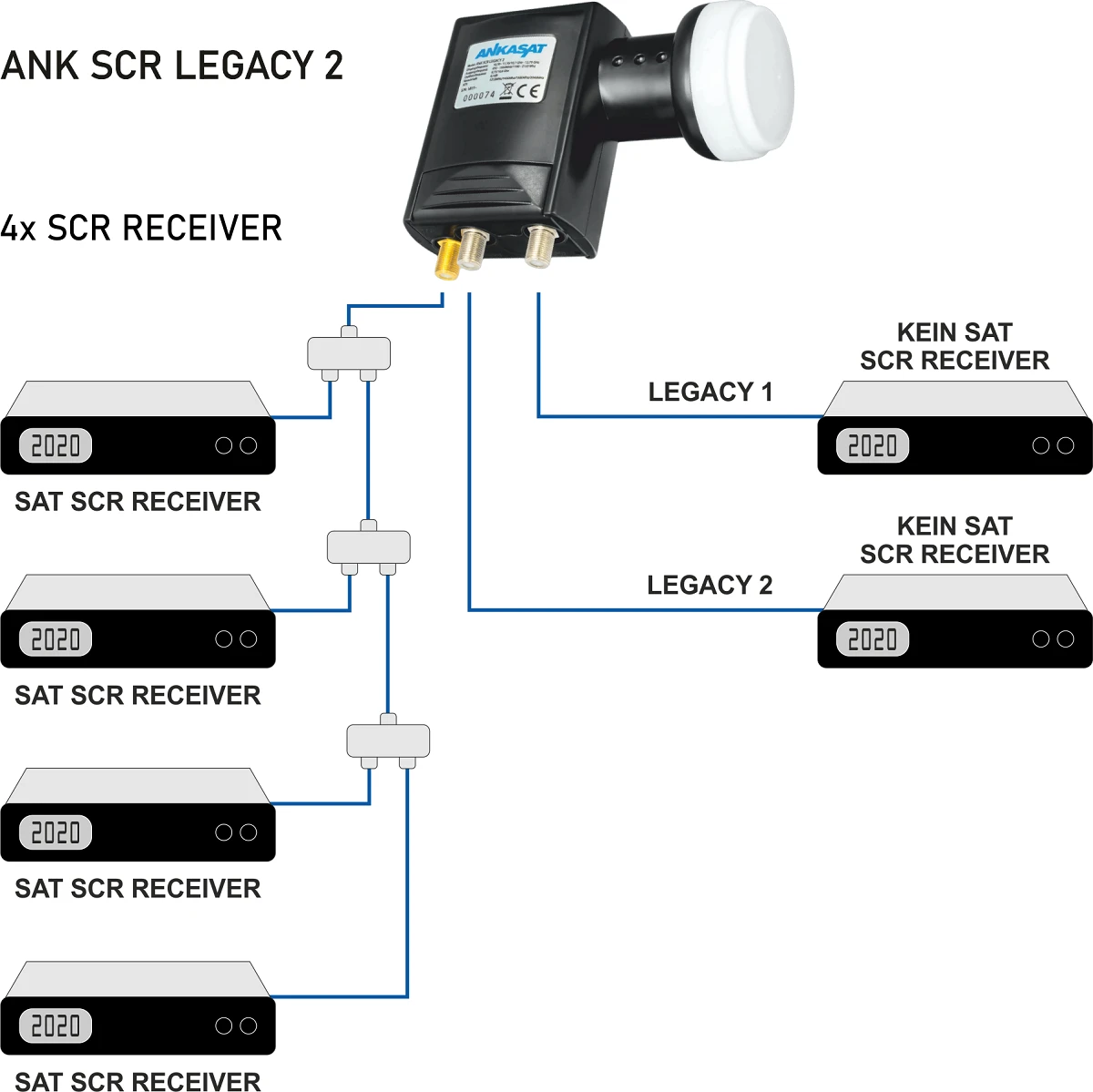 Konwerter UNICABLE Ankasat ANK SCR Legacy 2 przeznaczony do odbioru programów telewizji satelitarnej.