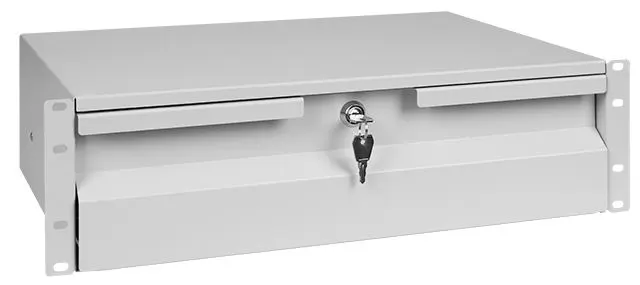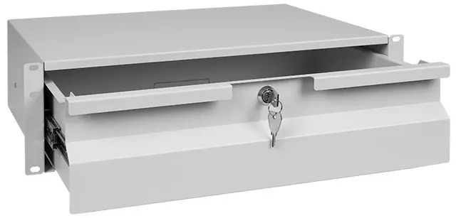 Szuflada polecana do Szafy Rackowej 19” o głębokości minimum 350mm. Idealna do przechowywania ważnych dokumentów lub sprzętów – zabezpieczona zamkiem (w komplecie 2 klucze). Wysokiej jakości stal proszkowo malowana z jakiej wykonano szufladę zapewnia jej wytrzymałość i stabilność konstrukcji.