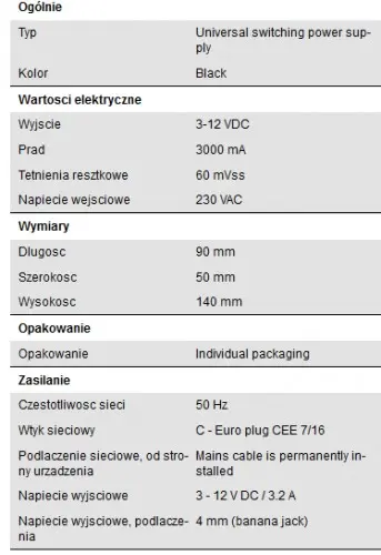 Zasilacz impulsowy stołowy, 3200 mA