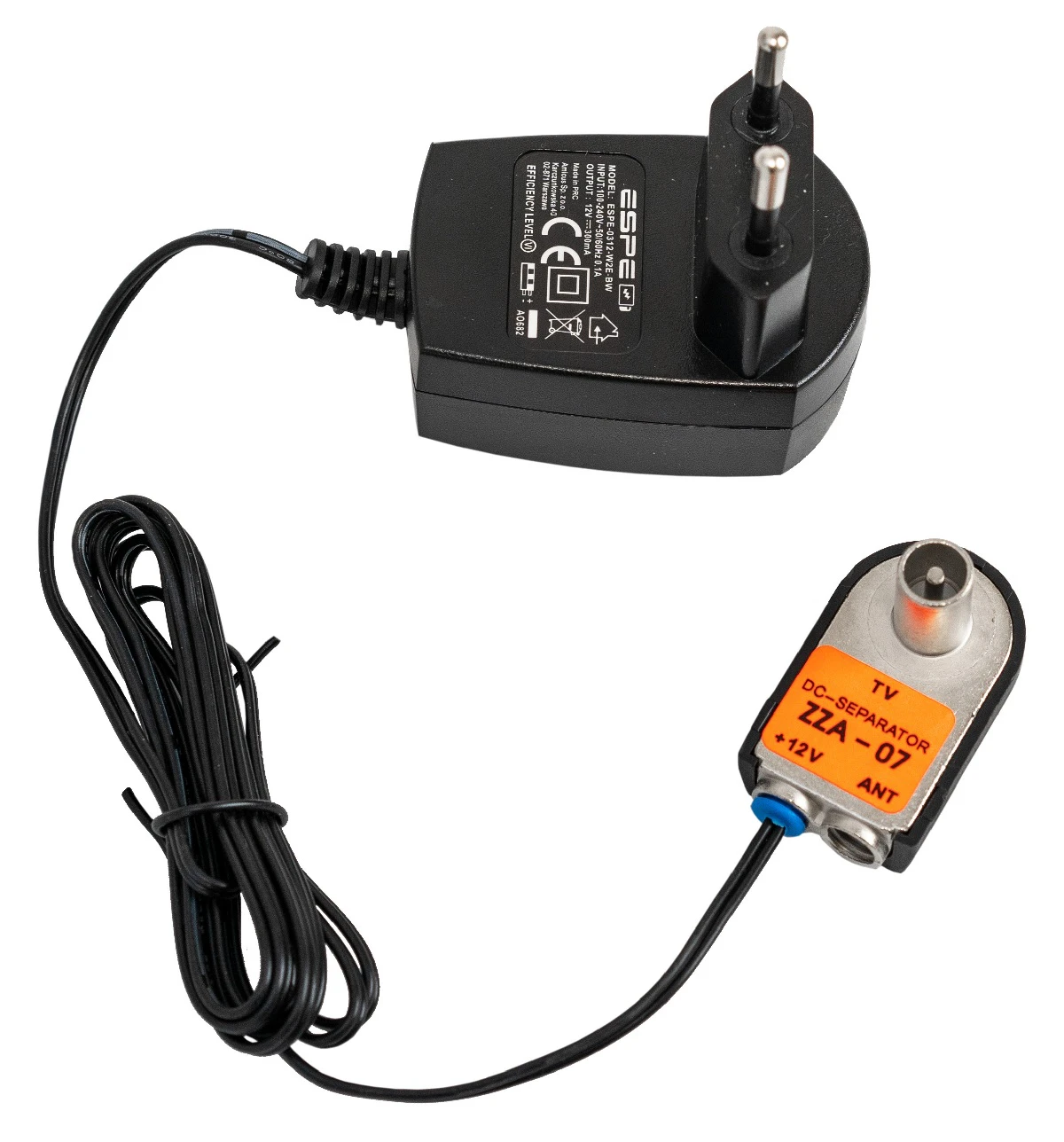 Antena w zestawie z zasilaczem antenowym 12V/300mA, Telkom-Telmor ZZA-7, ze zwrotnicą.