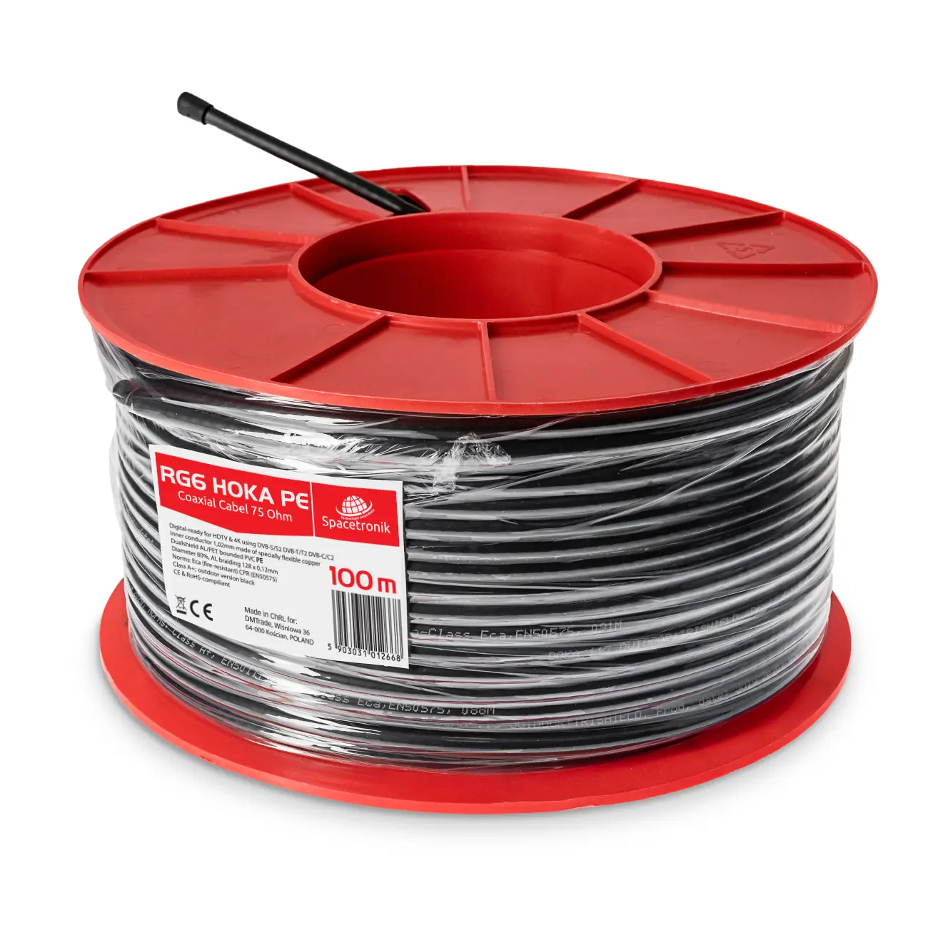 Kabel RG6 Spacetronik HOKA 4K 102 CU Dualshield przeznaczony jest do wykonywania antenowych instalacji telewizji naziemnej, satelitarnej i kablowych oraz instalacji zbiorczych. Kabel jest klejony, co zwiększa jego wytrzymałość i jakość przesyłania sygnału. Dzięki żelowanej powłoce zewnętrznej, jest odporny na warunki atmosferyczne.