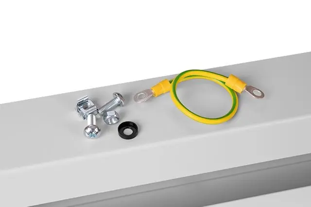 Wyposażony w szynę TS35, oraz osłonę z otworem 400 x 45,5 mm.