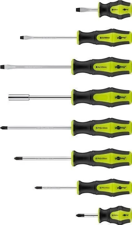 - w zestawie 3 wkrętaki płaskie: 6x125 mm, 5x100 mm, 6x38 mm;