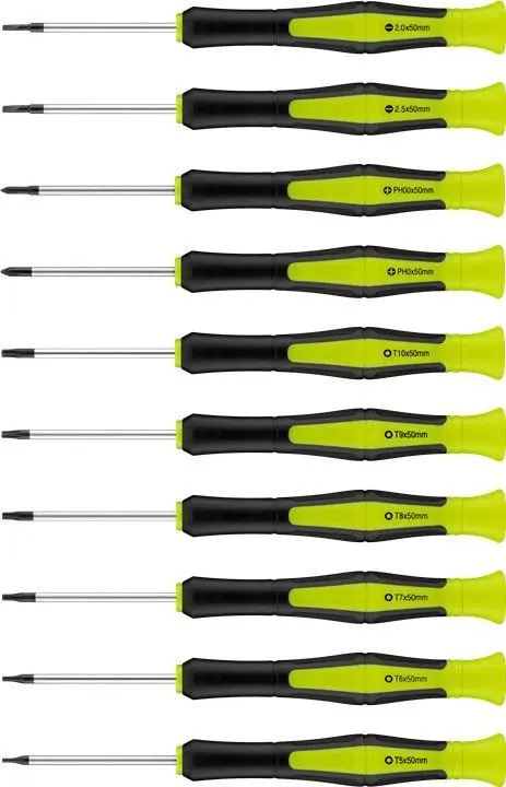 - w zestawie 6 precyzyjnych wkrętaków torx: T5, T6, T7, T8, T9, T10 x 50 mm;