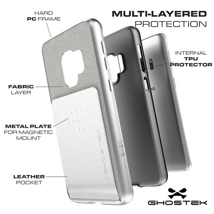 Każde etui z serii Exec (zarówno 2 i 3) zostało wyposażone w specjalny schowek na karty bankomatowe, dokumenty itp. W czasach, gdy większość papierów mamy w notebookach czy smartfonach w formatach elektronicznych, etui to może zastąpić nam tradycyjny portfel. Exec 2 posiada specjalny slot na karty z tyłu i dodatkowo jest tam także miejsce aby korzystać w etui z uchwytu magnetycznego w samochodzie. Exec 3 natomiast ma kieszeń z zapięciem magnetycznym, która znajduje się z przodu etui dodatkowo chroniąc wyświetlacz smartfona. Jest ona otwierana jak etui typu kabura/okładka.
