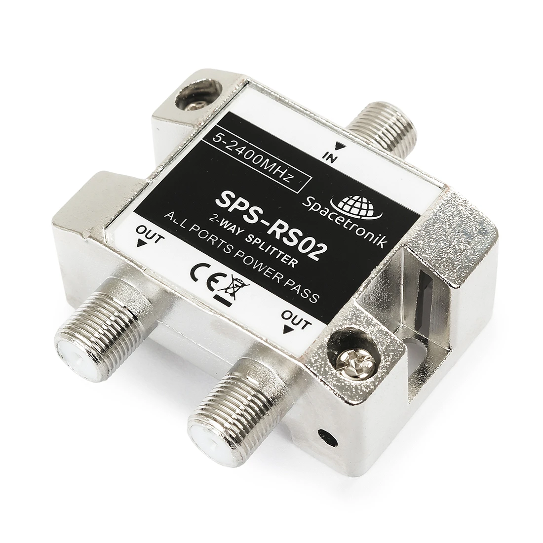 Spacetronik SPS-RS02 pracuje w zakresie 5-2400 MHz. Wszystkie porty: Złącza typu "F".