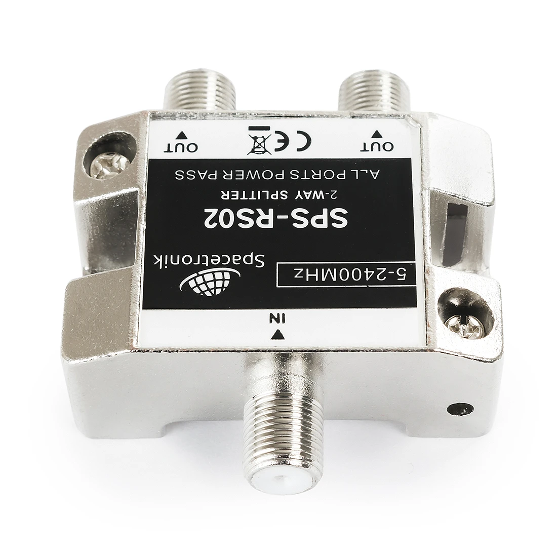 Wysokiej jakości małostratny ekranowany splitter, (rozgałęźnik sygnału telewizyjnego), posiadający 1 wejście i 2 wyjścia.