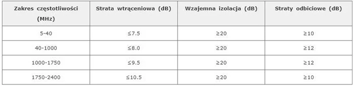 - współczynnik ekranowania: 5-2400MHz ≥100dB