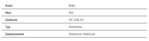 Stworzona z najlepszej jakości matereiałów, doskonała lampa UV do hybryd. W białym kolorze, jest niewielkich rozmiarów, dzięki czemu w bardzo łatwy sposób zmieścimy ją w torbie podróżnej. Wystarczy podłączyć ją za pomocą załączonego kabla USB DC 5V do powerbanka lub innego urządzenia posiadającego USB, aby cieszyć się możliwością szybkiego utrwaleniu koloru na Twoich paznokciach.