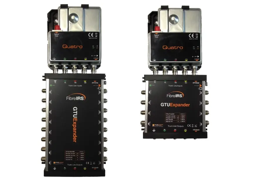 Multiswitch GTU może zwiększyć moc wyjściową odbiornika światłowodowego quatro GTU od 8 do 48 wyjść (przy użyciu multiswitchy kaskadowych w połaczeniu 3 x 16).