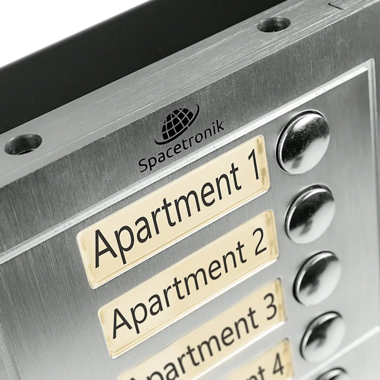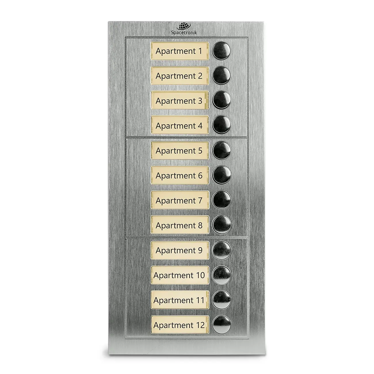 Dodatkowy panel dwunastorodzinny do rozbudowy systemu Spacetronik DiO. Panel wyróżnia się estetycznie wykonaną wandaloodporną obudową ze stopu aluminium, w którą wkomponowane zostały podświetlane szyldy. Podświetlenie nocne LED pozwala na komfortowe korzystanie z urządzenia w warunkach niedostatecznej widoczności.