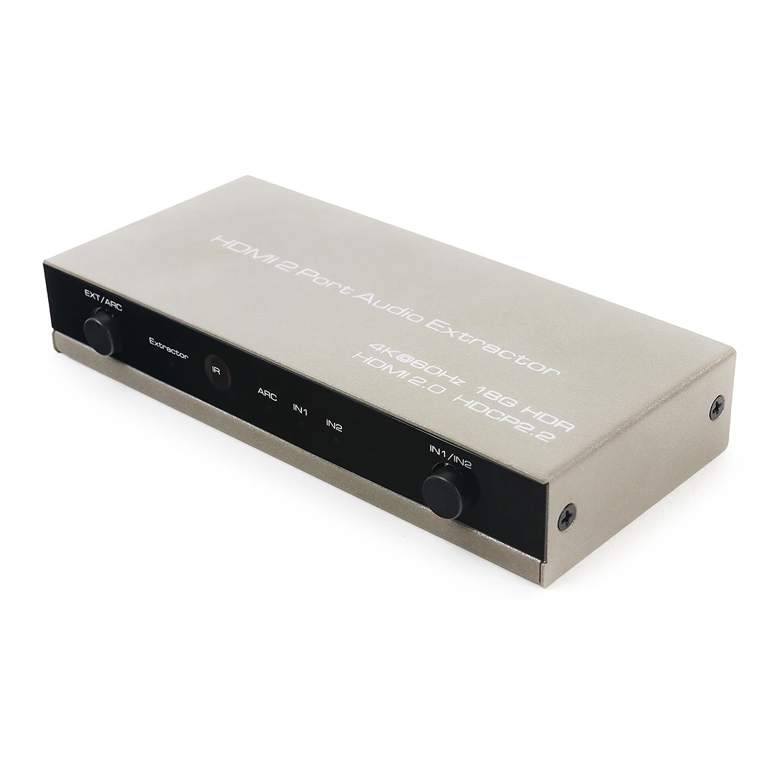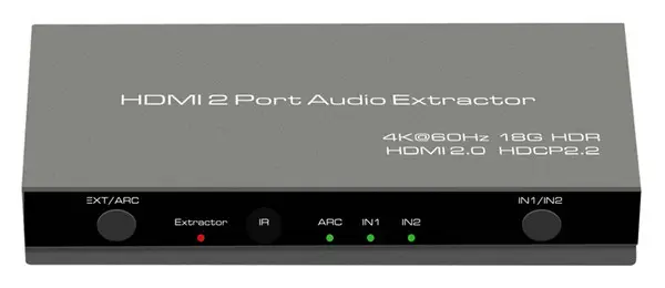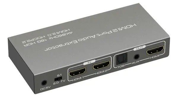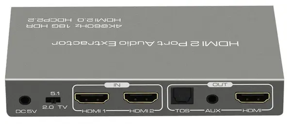 Extractor 2x HDMI na HDMI + Audio (R/L+SPDIF) pozwala na podłączenie dwóch urządzeń wysyłających sygnał audio i video (tuner, konsola, dvd, blu-ray) do telewizora kablem HDMI. Dodatkowo można wyodrębnić sygnał audio z urządzenia i przesłać go do amplitunera kina domowego lub innego tego typu urządzenia. Dzięki takiemu rozwiązaniu dźwięk będzie słyszalny standardowo z głośników telewizora i dodatkowo z drugiego źródła po włączeniu amplitunera. Ciekawe rozwiązanie gdy chcemy panować i sami decydować kiedy dźwięk ma być słyszalny z danego urządzenia. Urządzenie posiada możliwość przełączania wejścia sygnału oraz wyjścia dźwieku 2.0; 5.1 lub TV