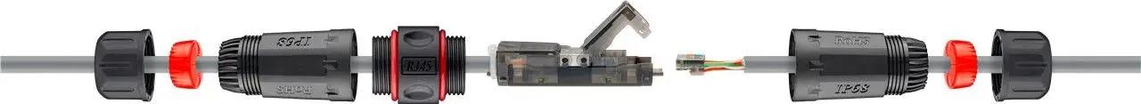 Zewnętrzne złącze kablowe przeznaczone jest do 8-żyłowego łączenia, przedłużania, naprawy lub przenoszenia kabli sieci danych LAN, eliminując potrzebę stosowania dużych skrzynek przyłączeniowych. Łatwy montaż bez użycia specjalnych narzędzi, łatwe do rozbudowy. Zewnętrzna obudowa z tworzywa sztucznego PA66/ABS, stopień ochrony IP68, wyposażona w odciążenie po obu stronach. do łatwego podłączania kabli instalacyjnych w sieci - nie są wymagane żadne specjalne narzędzia.