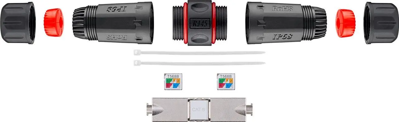 Zewnętrzne złącze kablowe przeznaczone jest do 8-żyłowego łączenia, przedłużania, naprawy lub przenoszenia kabli sieci danych LAN, eliminując potrzebę stosowania dużych skrzynek przyłączeniowych. Łatwy montaż bez użycia specjalnych narzędzi, łatwe do rozbudowy. Zewnętrzna obudowa z tworzywa sztucznego PA66/ABS, stopień ochrony IP68, wyposażona w odciążenie po obu stronach. do łatwego podłączania kabli instalacyjnych w sieci - nie są wymagane żadne specjalne narzędzia.Cechy produktu: