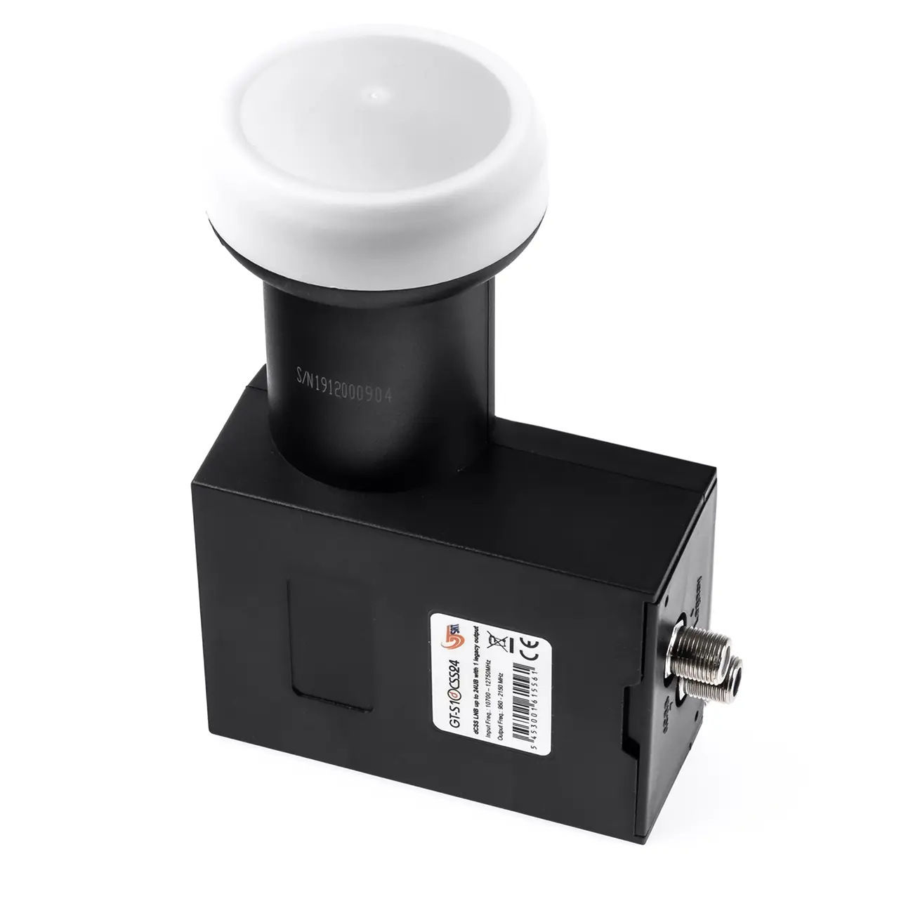 Konwenter LNB Unicable SCR GT-SAT GT-S1dCSS24 na jednoprzewodową (szeregową) transmisję sygnału satelitarnego do max. 24 odbiorników z oznaczeniem Unicable II.