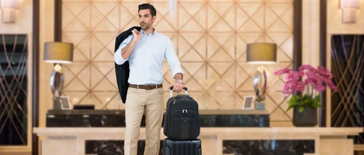Everki Versa pozwala bezpiecznie przewozić plecak na torbie podróżnej, specjalnie schowany pas pozwala przelozyc plecak przez uchwyt torby podróżnej.