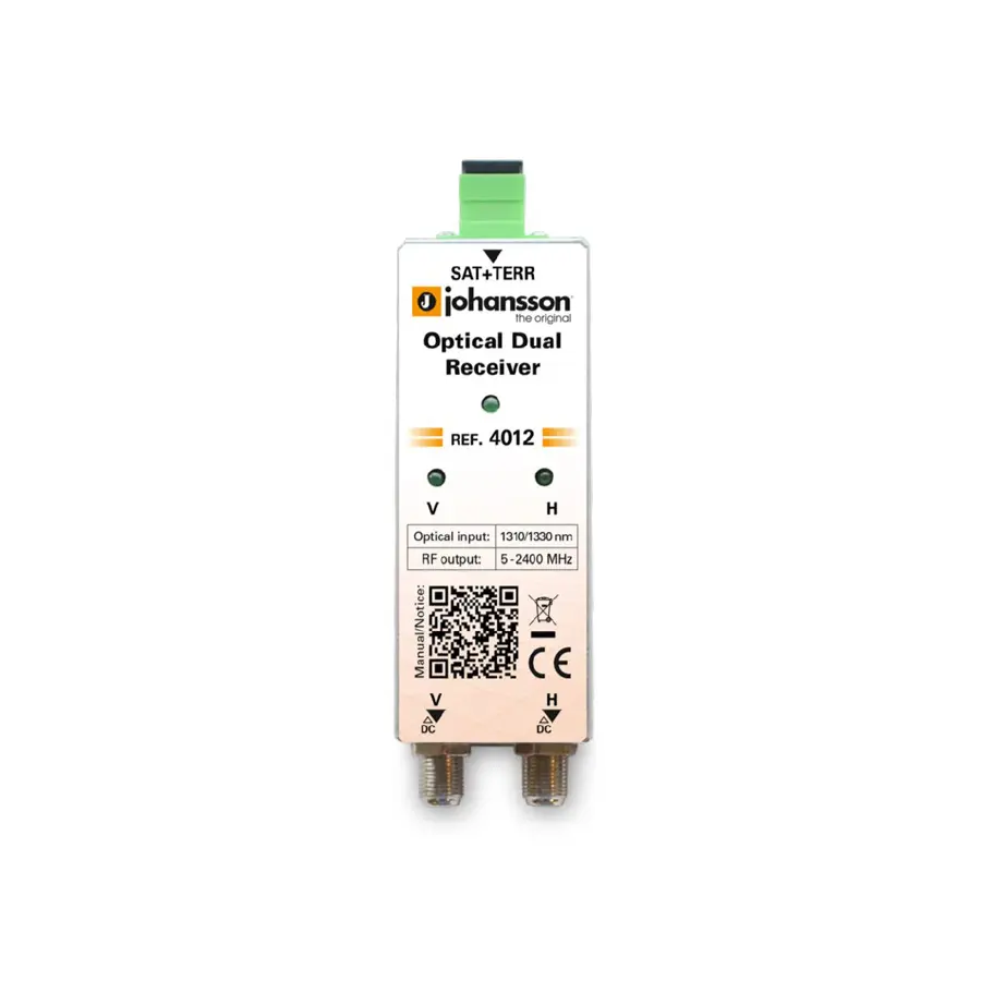 Odbiornik optyczny został opracowany do transmisji sygnałów szerokopasmowych w średnich i dużych systemach światłowodowych. Odbiornik optyczny może przetwarzać jedną, dwie lub trzy długości fali. Nr ref. 4012 (optyczny podwójny odbiornik) przekształca 1310 + 1330 nm w szerokopasmowy V / H.