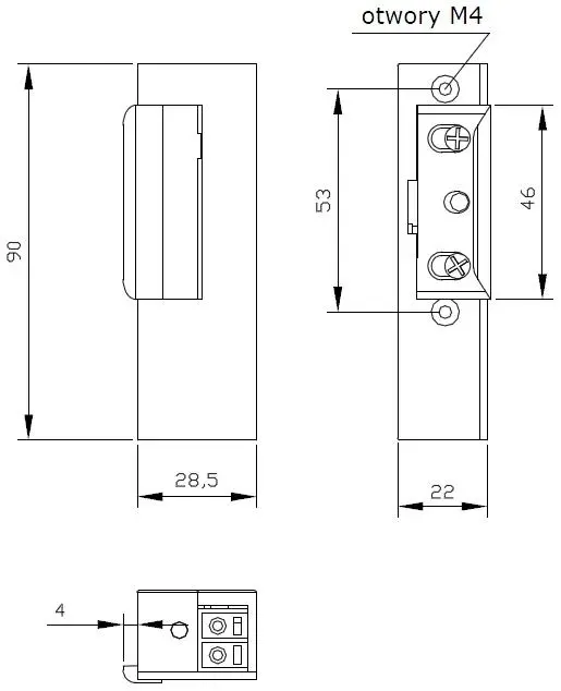- Wymiary zewnętrzne obudowy: 22 x 28 x 90 mm