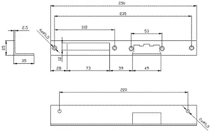Szyld kątowy długi lewy przeznaczony jest do drzwi lewych. Szyld pokryty jest powłoką proszkową koloru stalowa jasna.
