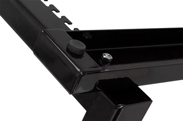 Stojak został wyposażony w antypoślizgowe gumki, dzięki czemu nie przesuwa się nawet na śliskich powierzchniach. Do zestawu dołączamy zestaw czterech śrub M5 do łączenia elementów stojaka, oraz dwa zestawy śrub M6 z koszyczkami i podkładkami.