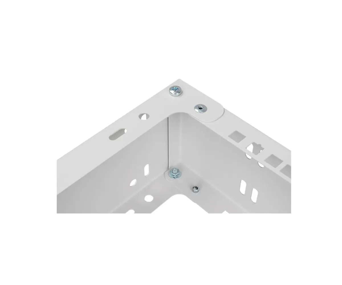 Uchwyt Rack przystosowany do montażu bezpośrednio do ściany. Zaprojektowany w standardzie 19". Ułatwia montaż urządzeń do których dostęp nie musi być zabezpieczony szafami serwerowymi. Dodatkowo na każdym uchwycie są otwory od góry i dołu w standardzie 19" do zamocowania dodatkowych mniejszych urządzeń.