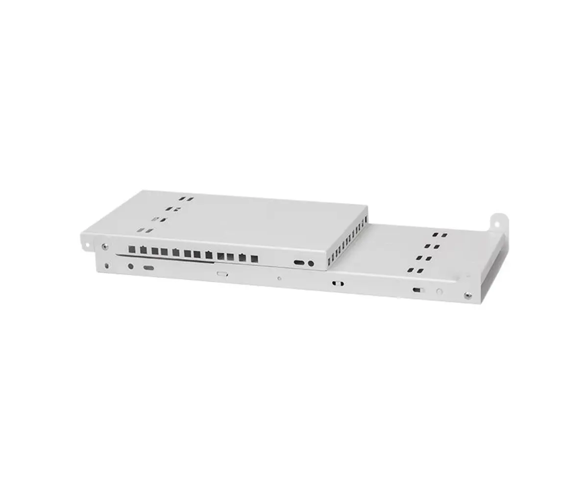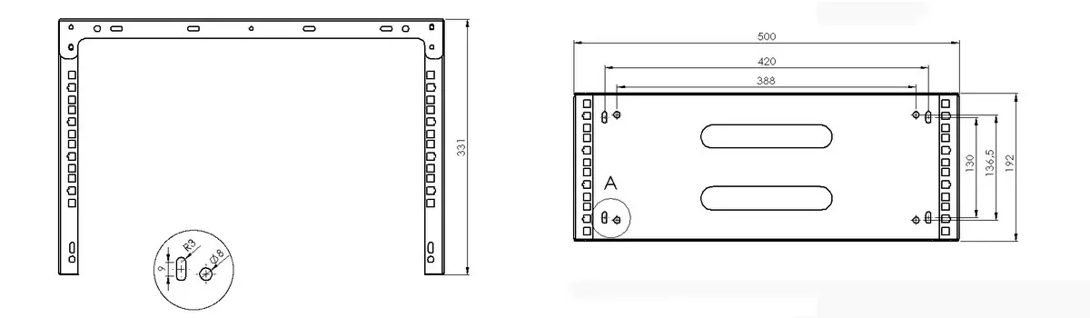 Uchwyt Rack przystosowany do montażu bezpośrednio do ściany. Zaprojektowany w standardzie 19". Ułatwia montaż urządzeń do których dostęp nie musi być zabezpieczony szafami serwerowymi. Dodatkowo na każdym uchwycie są otwory od góry i dołu w standardzie 19" do zamocowania dodatkowych mniejszych urządzeń.