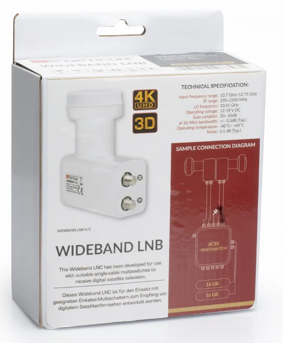 Wideband w przeciwieństwie od standardowych konwerterów typu quatro różni się tym że posiada dwa wyjścia sygnału H i V zamiast czterech VL, VH, HL, HH.