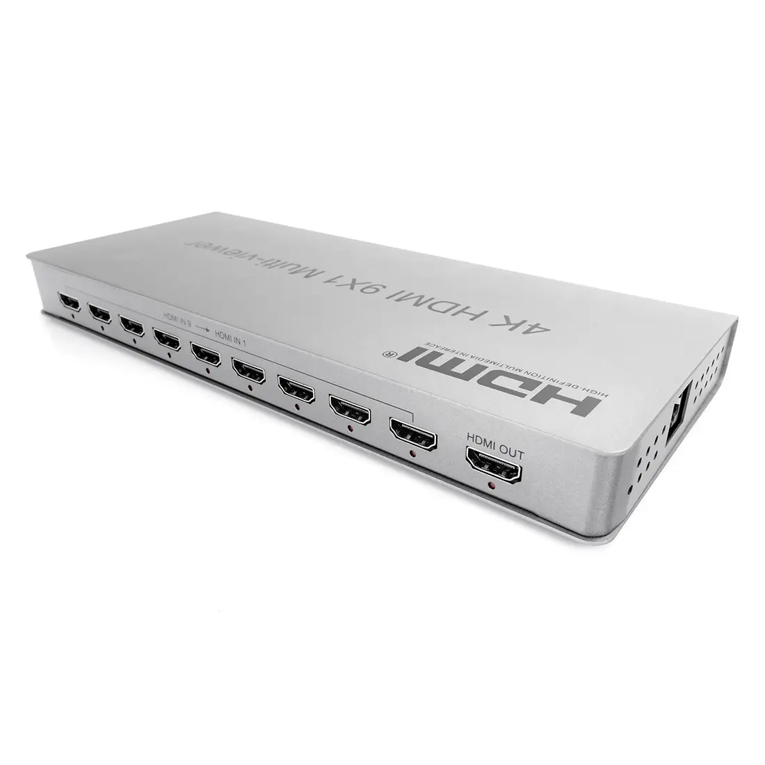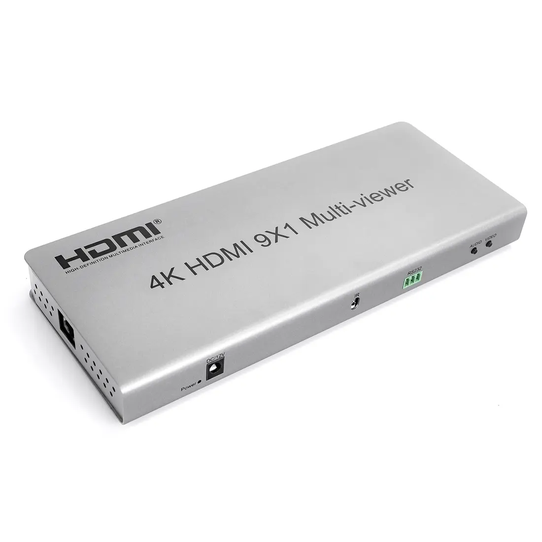 Multi-viewer 4K HDMI 9x1 to wysoka wydajność z dziewięcioma segmentami ekranu HD i płynnym przełączaniem wyjścia. Może wyświetlać cyfrowy sygnał wideo 9 HD na tym samym ekranie i ma różnorodną segmentację wideo, płynnie przełączając synchronicznie sygnał wejściowy 9 HD. Metody sterowania przełącznikiem są elastyczne, można je przełączać za pomocą przycisku i sterowania na podczerwień. Jest to bardzo praktyczny i stabilny przełącznik oraz łatwy w instalacji, może być stosowany w dużych projektach, salach spotkań i innych miejscach