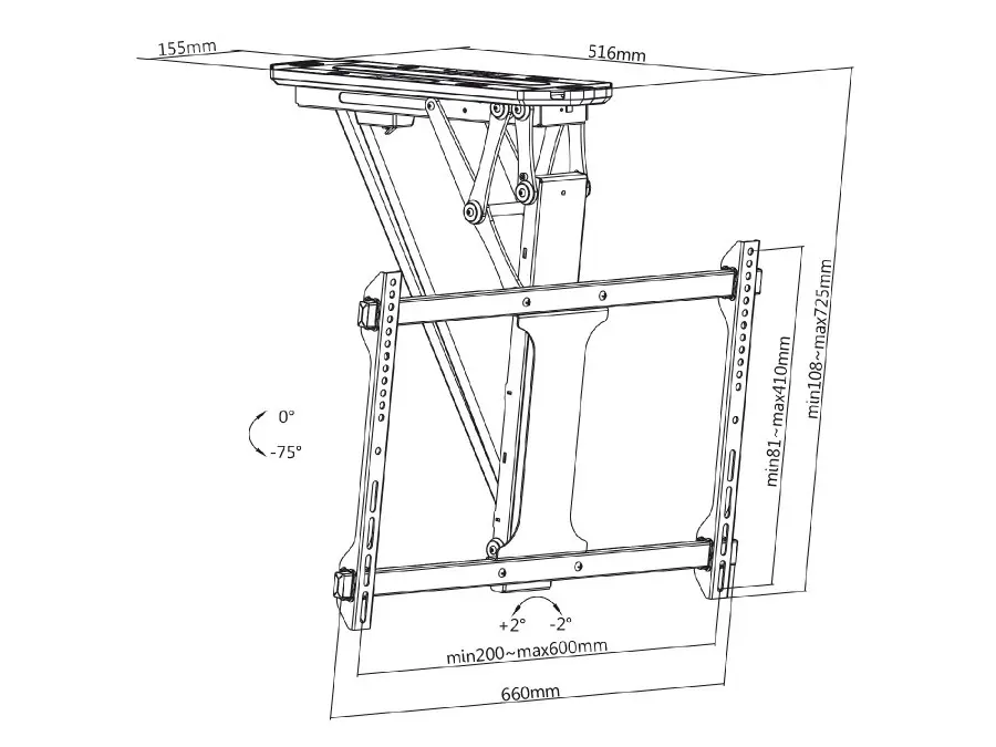 - VESA: 200x100, 200x200, 200x400, 300x200, 300x300, 400x200, 400x300, 400x400, 600x400 mm
