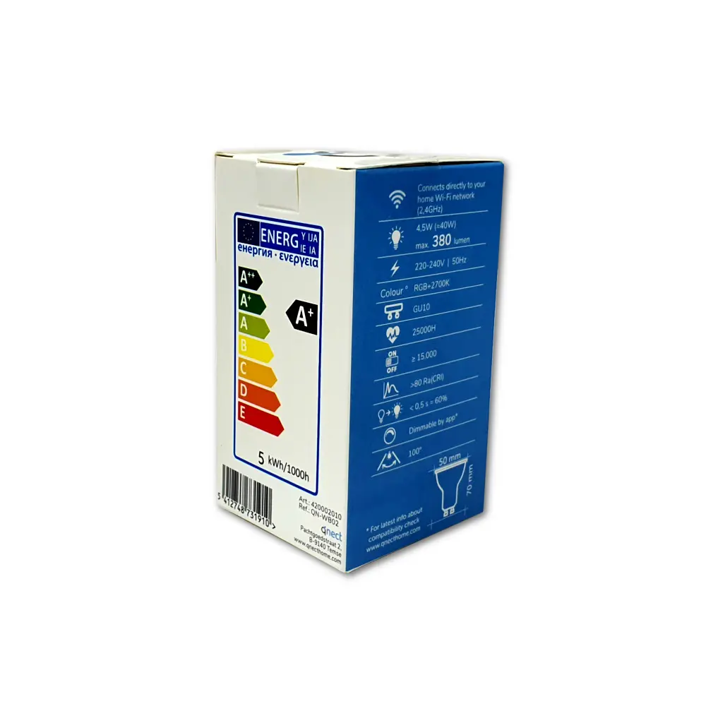 Przejmij kontrolę nad swoimi światłami dzięki tej inteligentnej żarówce qnect QN-WB02, która łączy się bezpośrednio z domową siecią WiFi. Za pomocą tej inteligentnej żarówki możesz w pełni zautomatyzować swoje światła. Stwórz niepowtarzalny romatnyczny klimat lub rozkręć imprezę dzięki inteligentnej żarówce LED. Wybierz dowolny kolor spośród 16 milionowej palety barw, zmień jasność i nasycenie. Sterowanie światłem nigdy nie było łatwiejsze. To idealne rozwiązanie dla użytkowników stawiających na wygodę i komfort. Możesz sterować swoim oświetleniem z dowolnego miejsca. Dopasuj światło do swojego nastroju i potrzeb. Żarówka qnect QN-WB02 nie wymaga dodatkowych urządzeń. Wystarczy, że wymienisz swoją starą żarówkę - będzie kompatybilna z Twoim poprzednim oświetleniem, ponieważ posiada uniwersalny gwint GU10. Dodaj swoje żarówki do grupy w aplikacji Smart Life i steruj nimi zbiorczo.
