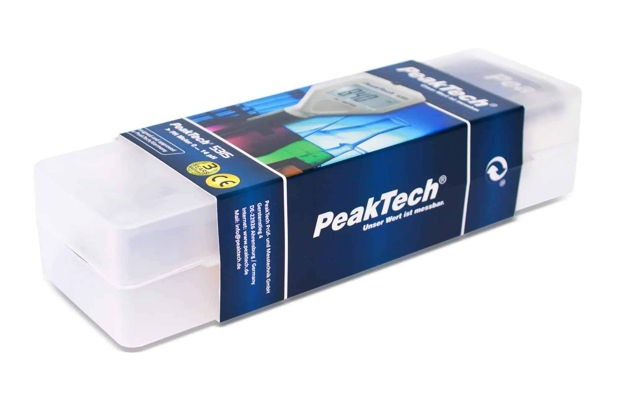 Nowe urządzenie pomiarowe PeakTech 5315 PH z długą i cienką sondą testową zostało specjalnie opracowane do użytku laboratoryjnego i może być również stosowane do mniejszych kolb Erlmeyera i probówek. Sondę PH można łatwo wyjąć i wymienić na połączenie śrubowe. Dla szczególnie dobrej czytelności wyświetlacz LCD ma białe podświetlenie, które włącza się automatycznie po włączeniu urządzenia. W górnej części obudowy znajduje się nie tylko włącznik i wyłącznik, ale także dwa potencjometry do kalibracji przy wartościach pH 7 lub pH 4, dla których zawarte są odpowiednie roztwory kalibracyjne.