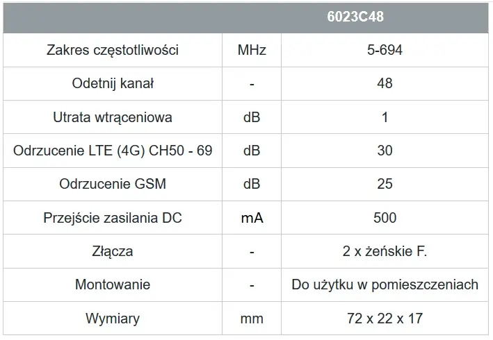 Filtr LTE / 5G Johansson 6023C48 5-694 MHz Niedostępny Dostępny Wysyłka w 2 dni Wysyłka w 3 dni Wysyłka w 4 dni Wysyłka w 5 dni Wysyłka w 6 dni Wysyłka w 7 dni Na zamówienie 42,99 zł Ilość:Dodaj do koszyka OUTLET BESTSELLER WYPRZEDAŻ NOWOŚĆ Filtr LTE / 5G Johansson 6023C48 5-694 MHz 42.99 In stock Filtr LTE / 5G Johansson 6023C48 5-694 MHz (Zobacz opinie) Dodaj do schowka gwarancji promocji Filtr LTE / 5G przeznaczony do eliminowania zakłóceń w odbiorze sygnału w zakresie częstotliwości 5-694 MHz do kanału 48 Zobacz pełny opis produktu Johansson 17805 42,99 zł Niedostępny Dostępny Wysyłka w 2 dni Wysyłka w 3 dni Wysyłka w 4 dni Wysyłka w 5 dni Wysyłka w 6 dni Wysyłka w 7 dni Na zamówienie Ilość:Dodaj do koszyka lub zadzwoń i zamów!+48 61 111 02 52 Darmowa dostawa Zamów do 13:00 Wysyłka dzisiaj* Do wysyłki dzisiaj pozostało:Do wysyłki jutro pozostało: *nie dot. zamówień złożonych w poniedziałek Tego produktu już nie będzie Sprawdź podobne produkty Strefa hurtownika 42,99 zł Towar w sprzedaży hurtowej tylko po indywidualnym kontakcie