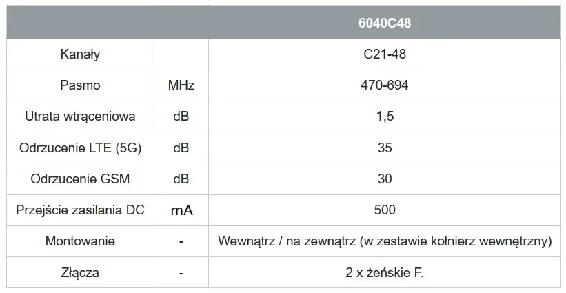 Filtr LTE / 4G / 5G Johansson 6040C48 470-694 MHz Niedostępny Dostępny Wysyłka w 2 dni Wysyłka w 3 dni Wysyłka w 4 dni Wysyłka w 5 dni Wysyłka w 6 dni Wysyłka w 7 dni Na zamówienie 74,99 zł Ilość:Dodaj do koszyka OUTLET BESTSELLER WYPRZEDAŻ NOWOŚĆ Filtr LTE / 4G / 5G Johansson 6040C48 470-694 MHz 74.99 In stock Filtr LTE / 4G / 5G Johansson 6040C48 470-694 MHz (Zobacz opinie) Dodaj do schowka gwarancji promocji Filtr LTE / 4G / 5G przeznaczony do eliminowania zakłóceń w odbiorze sygnału w zakresie częstotliwości 470-694 MHz w dodatkowej zewnętrznej obudowie Zobacz pełny opis produktu Johansson 17807 74,99 zł Niedostępny Dostępny Wysyłka w 2 dni Wysyłka w 3 dni Wysyłka w 4 dni Wysyłka w 5 dni Wysyłka w 6 dni Wysyłka w 7 dni Na zamówienie Ilość:Dodaj do koszyka lub zadzwoń i zamów!+48 61 111 02 52 Darmowa dostawa Zamów do 13:00 Wysyłka dzisiaj* Do wysyłki dzisiaj pozostało:Do wysyłki jutro pozostało: *nie dot. zamówień złożonych w poniedziałek Tego produktu już nie będzie Sprawdź podobne produkty Strefa hurtownika 74,99 zł Towar w sprzedaży hurtowej tylko po indywidualnym kontakcie