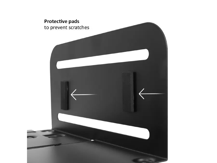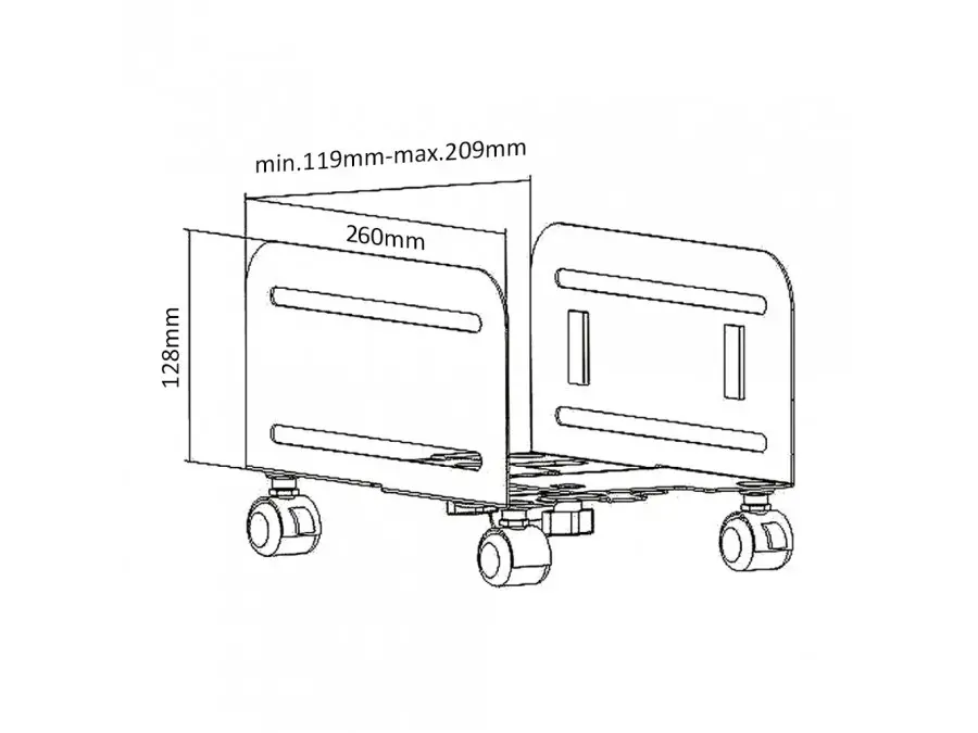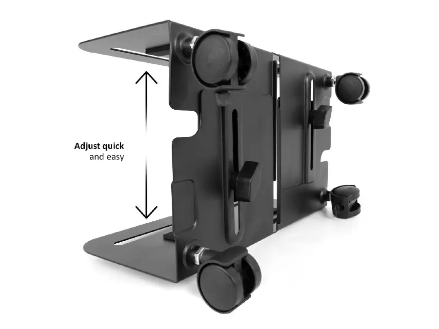 Dzięki regulacji szerokości w zakresie od 119 mm do 209 mm, wózek można dostosować do większości komputerów.