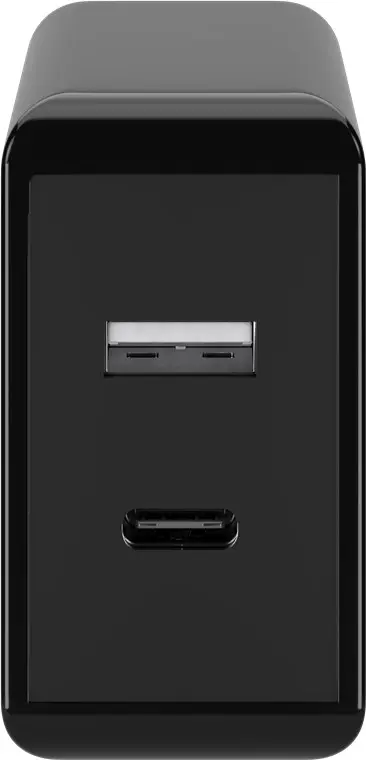 Ładowarka sieciowa z wyjściami USB i USB-C. Pełna zgodność ze standardem Power Delivery. Współpracująca również z technologią Quick Charge 3.0 w smartfonach i innych urządzeniach mobilnych opartych o procesory Qualcomm Snapdragon (np. Xiaomi, Samsung, OnePlus itp.). Zapewnia szybkie ładowanie z mocą 18W (aż do 4x szybciej niż tradycyjne ładowarki) na jednym wyjściu, przy ładowaniu dwóch urządzeń maksymalna moc wynosi 25W. Ochrona przed przeciążeniem i przepięciem. Wykorzystanie technologii Power Delivery jest efektywne tylko, gdy złącze w urządzeniu ładowanym to USB-C.