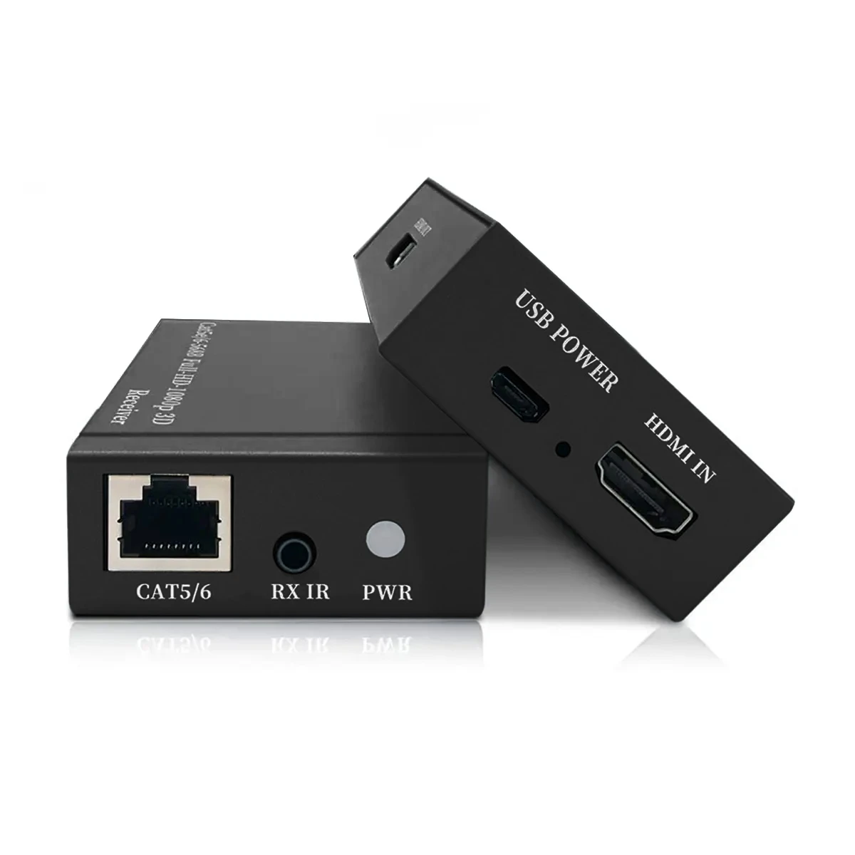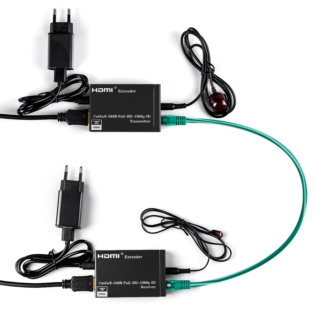 Podłączenie konwertera HDMI na LAN jest w tym przypadku bardzo łatwe. W zasadzie wystarczy podłączyć wejściowe HDMI np. z Laptopa, DVD, konsoli etc. do nadajnika (Transmitter), urządzenie wyjściowe takie jak monitor, projektor, telewizor podłączyć do odbiornika (Receiver). Następnie należy podłączyć oba urządzenia ( nadajnik oraz transmiter) ze sobą za pomocą kabla LAN w zależności od preferencji oraz podłączyć zasilanie ( zasilacze w komplecie). Aby w pełni cieszyć się transmisją HDMI na dużą odległość, możemy również wykorzystać transmitery IR (również znajdują się w zestawie). Co ciekawe nadajnik posiada przelotkę HDMI, dzięki której możemy podłączyć dodatkowy odbiornik za pomocą zwykłego kabla HDMI.
