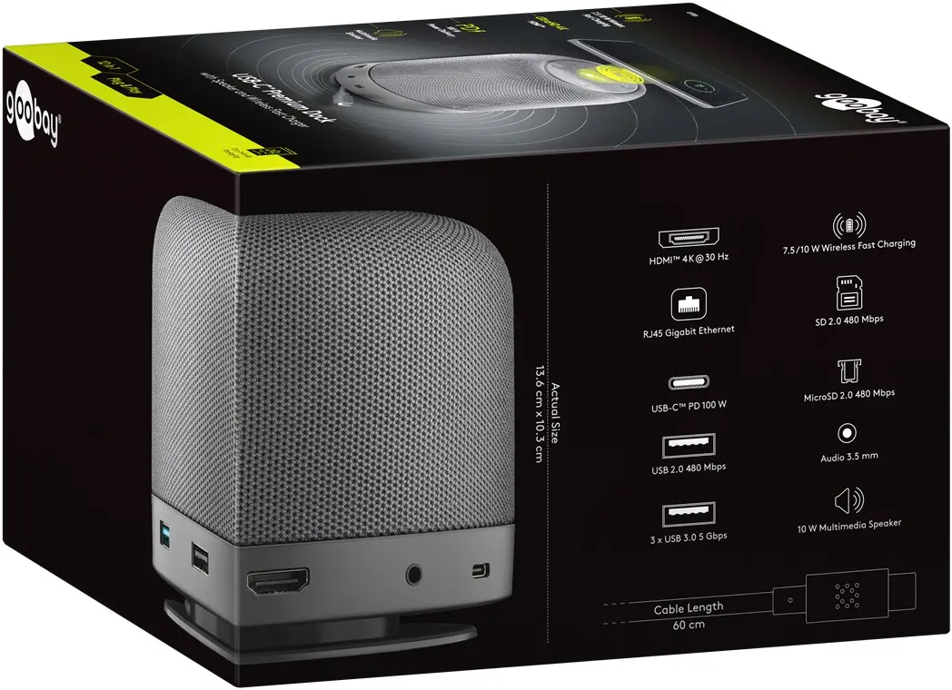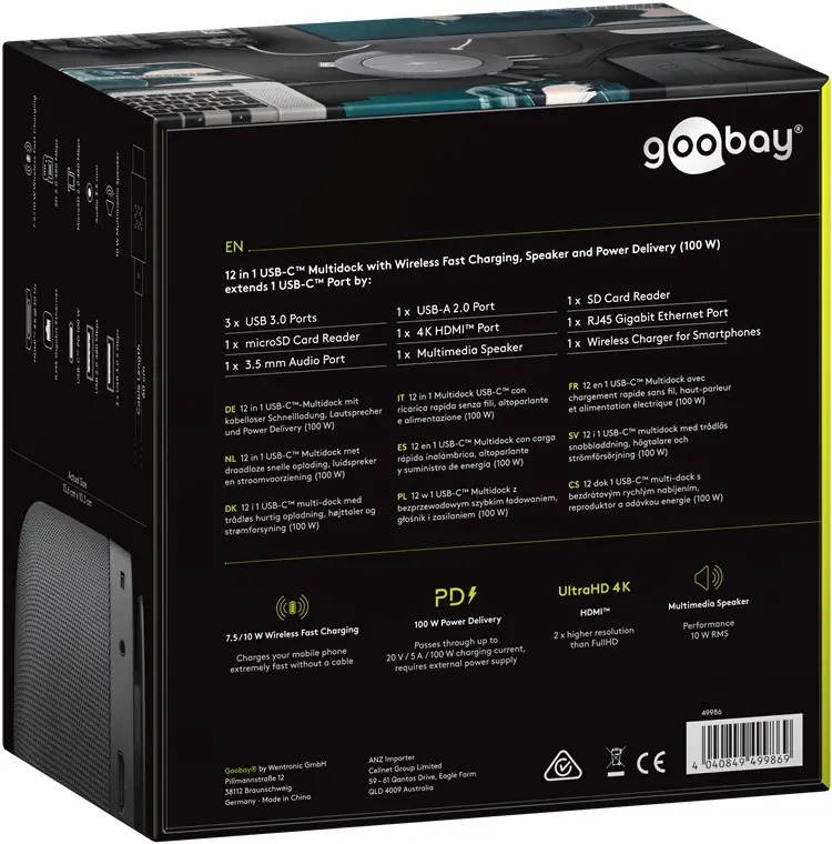 Multiport USB-C Goobay 12w1 | USB-C | USB 2.0 & 3.0 | HDMI | RJ45 | SD & microSD | AUX | Głośnik | Ładowarka indukcyjna |
