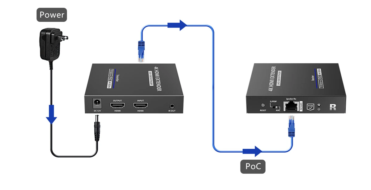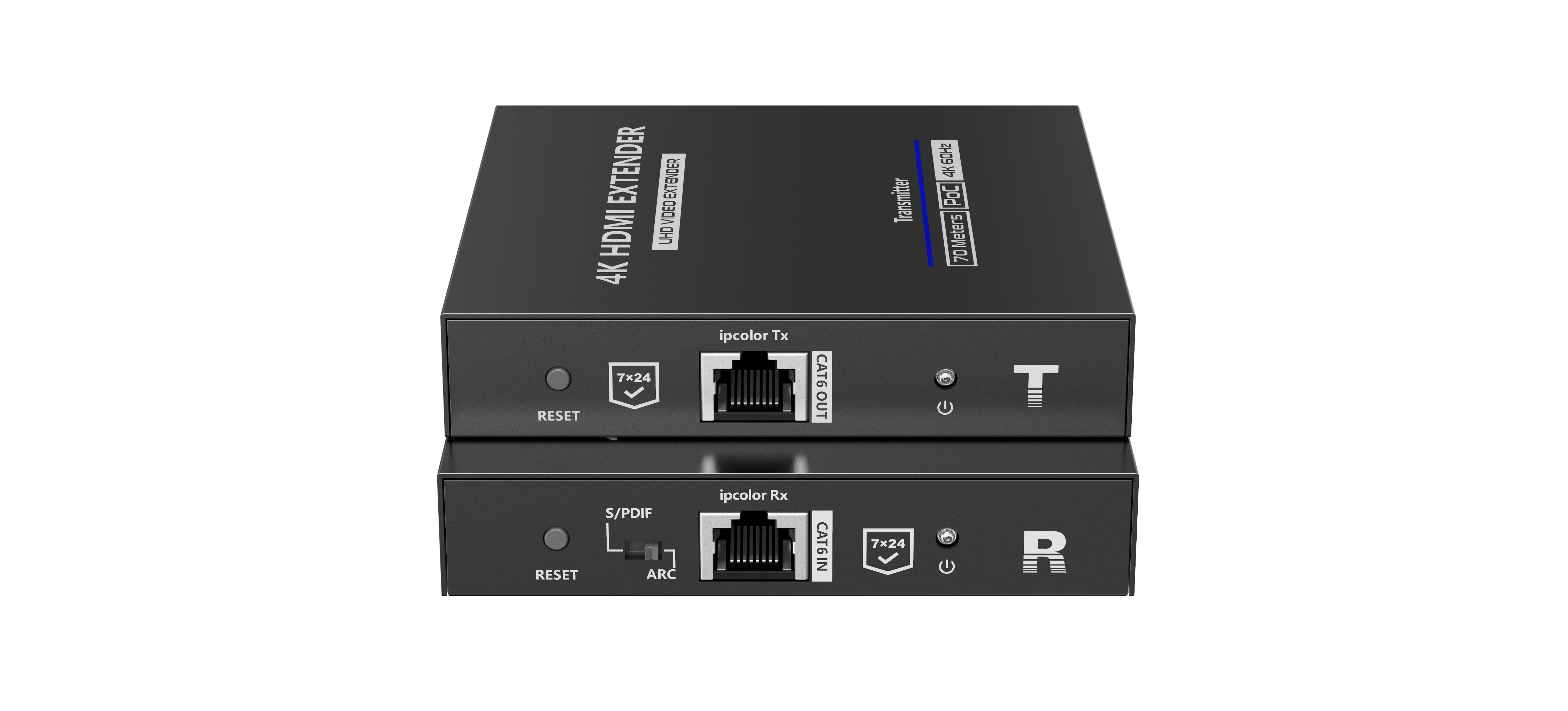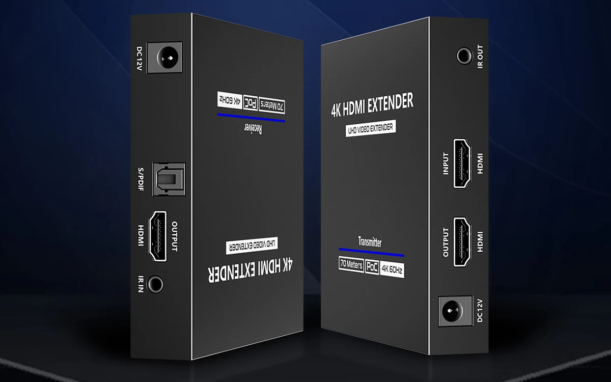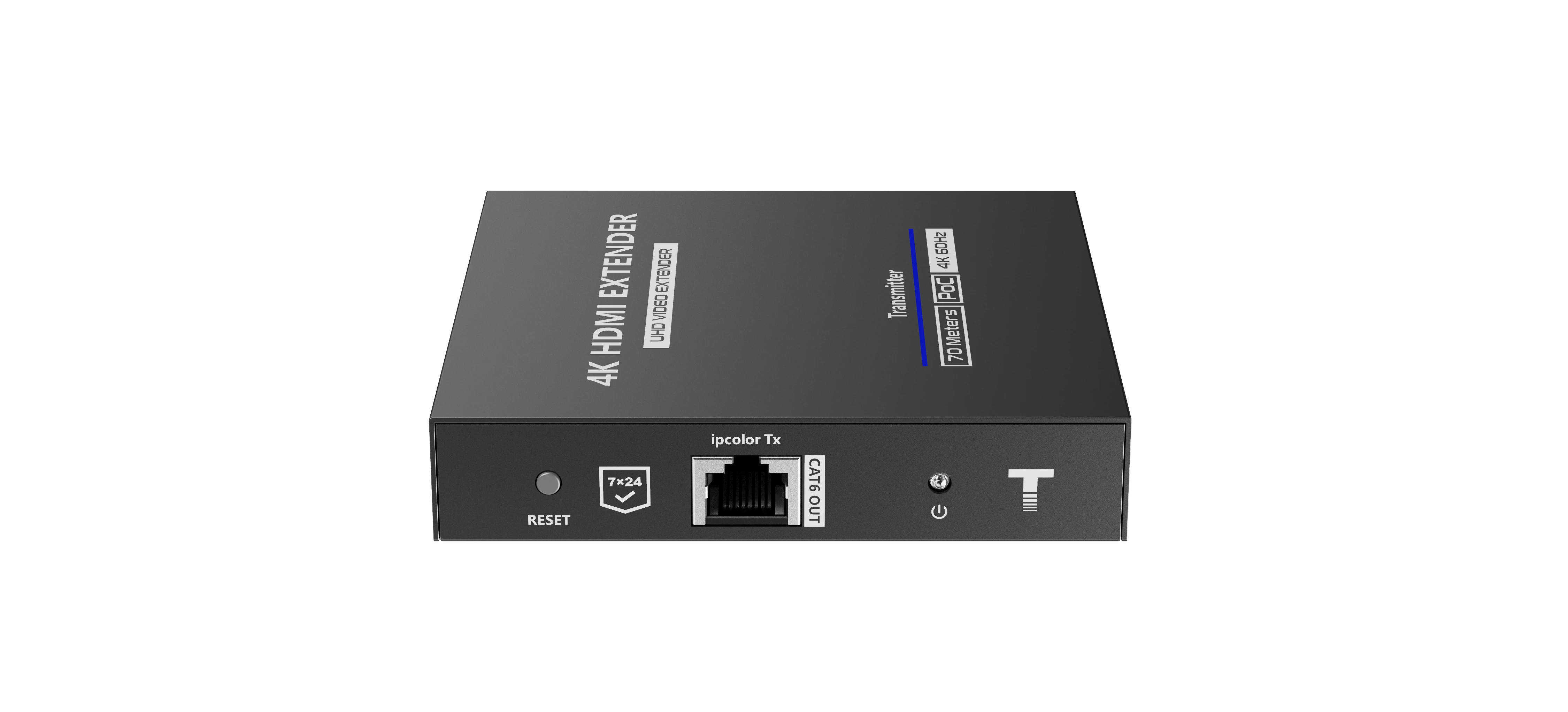 Przedłużacz HDMI umożliwia transmisję i rozszerzenie nieskompresowanego sygnału HDMI UHD 4K @ 60Hz za pomocą kabla sieciowego CAT6 / 6A / 7, odległość transmisji wynosi do 70 metrów w rozdzielczości 4K przy zerowym opóźnieniu. Zestaw zawiera jednostkę nadajnika (TX) i jednostkę odbiornika (RX), pracujące jako para. Urządzenie posiada funkcje obsługi dwukierunkowej IR. Urządzenie działa w trybie PoC - wystarczy zasilić transmiter, odbiornik odbierze zasilanie za pomocą kabla LAN.