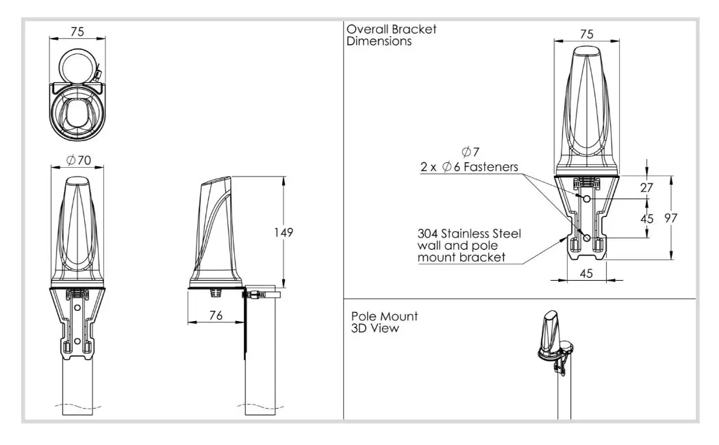 - Możliwość montażu na ścianie lub słupie w celu ułatwienia instalacji
